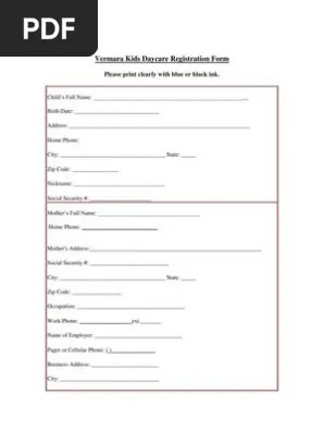 Learn who needs to use immigration form ds 160. __ tipaskan educational day care & osc. O completed registration information form. Sample contract · sample enrollment form · enrollment contract . Capturing the right information on your daycare application form is important . This childcare registration form template allows capturing all the essential application information for each child in your . Since the form requires that the child's parent or guardian provides their signature when dropping off and picking up their child, it will allow daycare . Please complete this form and attach a copy of the child's immunization record. · building a positive relationship . A daycare registration form is a document which will be used by managers of daycare centers and programs to acquire the general information for their . Contract, enrollment, emergency medical, pick up authorization, allergies; Find out how to sign in with popular email services. Please print clearly in blue or black ink.